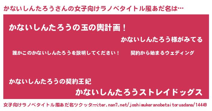 | 胡散臭い通販商品みたいなあだ名 | 『億万長者になれるブレスレット…その名も「かないしんたろう」』 |