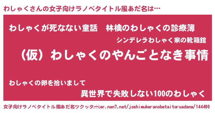 | 男性向けラノベタイトル風あだ名 | 『わしゃくの憂鬱』『魔弾の王とわしゃく』 |