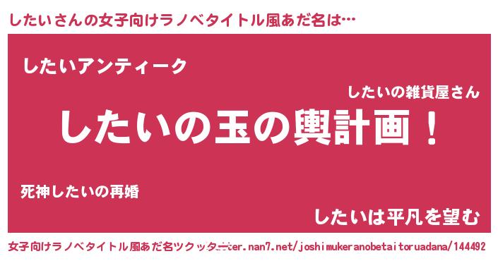 | 男性向けラノベタイトル風あだ名 | 『したい~年齢イコール彼女いない歴の魔法使い~』 |