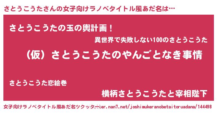 | 男性向けラノベタイトル風あだ名 | 『さとうこうたの憂鬱』 |