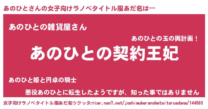 | 男性向けラノベタイトル風あだ名 | 『あのひとという概念が存在しない退屈な世界 』 |