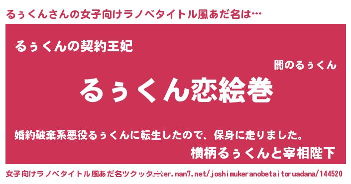 | 男性向けラノベタイトル風あだ名 | 『ノーゲーム・ノールゥクン』 |