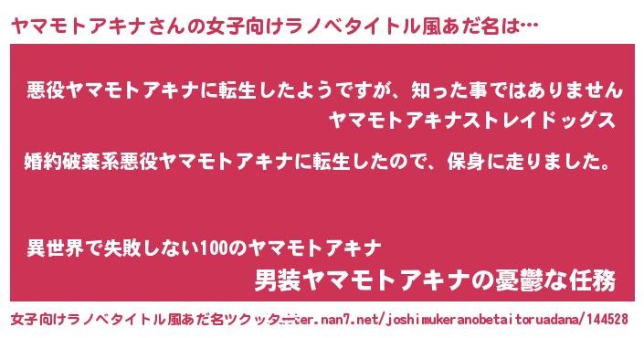 | 男性向けラノベタイトル風あだ名 | 『転生したらヤマモトアキナだった件』 |