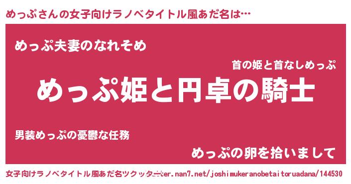 | 男性向けラノベタイトル風あだ名 | 『メップアートオンライン』 |
