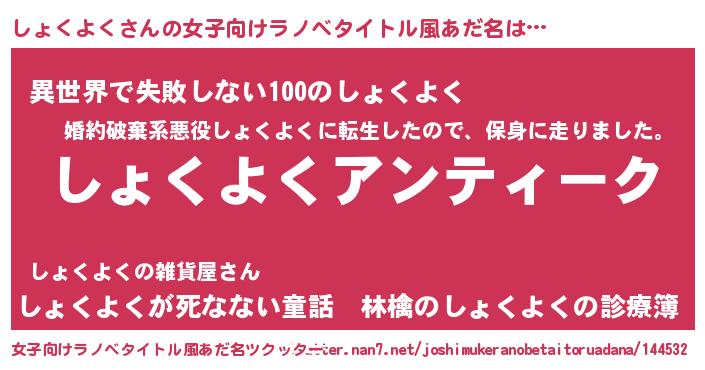 | 意味不明あだ名 | 『自称しょくよく』『永久保存しょくよく』 |