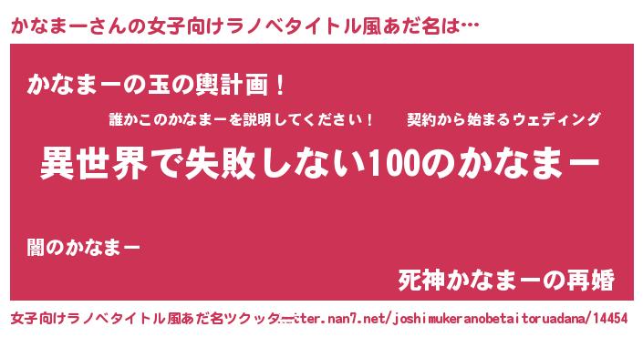 | 男性向けラノベタイトル風あだ名 | 『かなまーという概念が存在しない退屈な世界 』 |