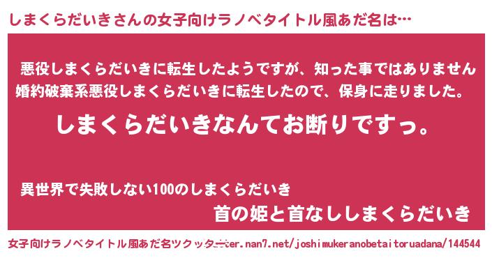 | 意味不明あだ名 | 『自称しまくらだいき』 |