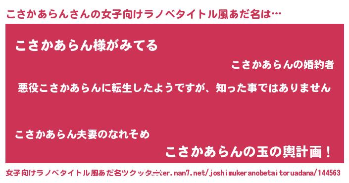 | 男性向けラノベタイトル風あだ名 | 『この素晴らしい世界にこさかあらんを!』 |