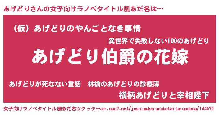 | 男性向けラノベタイトル風あだ名 | 『やはりあげどりの青春ラブコメはまちがっている 』 |