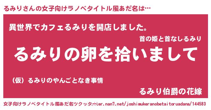 | 男性向けラノベタイトル風あだ名 | 『るみりの嫁は女の子じゃないと思った?』 |