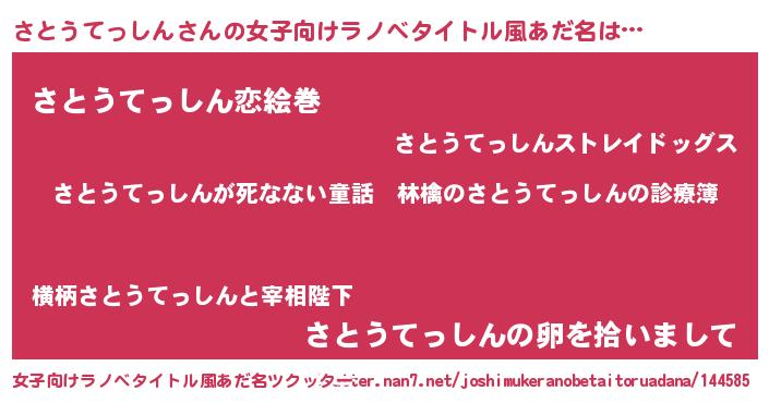 | 男性向けラノベタイトル風あだ名 | 『魔弾の王とさとうてっしん』 |