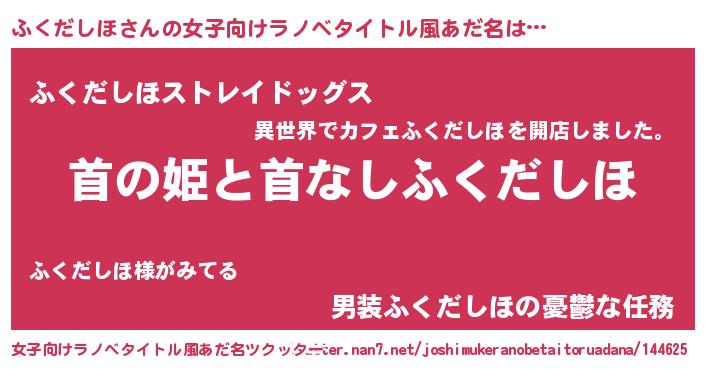 | ヘコむあだ名 | 『ふくだしほ(小並感)』『ふくを』 |