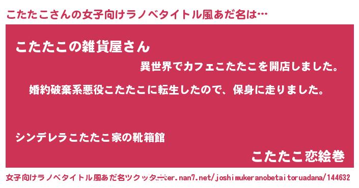 | 男性向けラノベタイトル風あだ名 | 『コタタコスレイヤー』『緋弾のコタタコ』 |