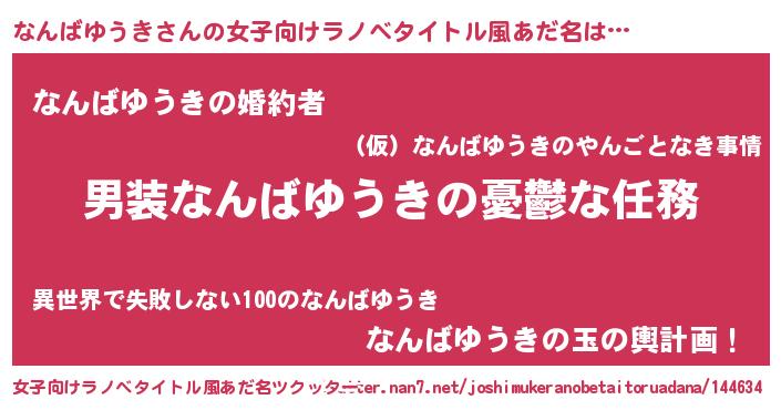 | 胡散臭い通販商品みたいなあだ名 | 『運命の人と巡り会える高級そうな絵画…その名も「なんばゆうき」』 |
