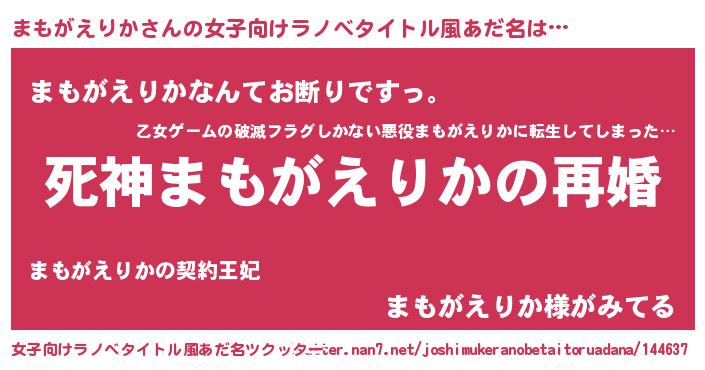 | 男性向けラノベタイトル風あだ名 | 『ノーゲーム・ノーマモガエリカ』 |