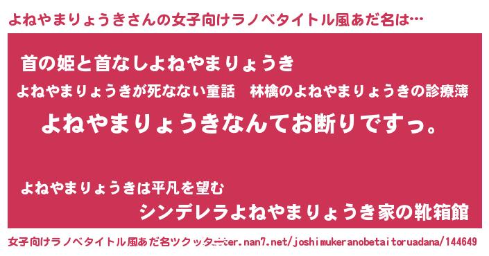 | 意味不明あだ名 | 『自称よねやまりょうき』 |