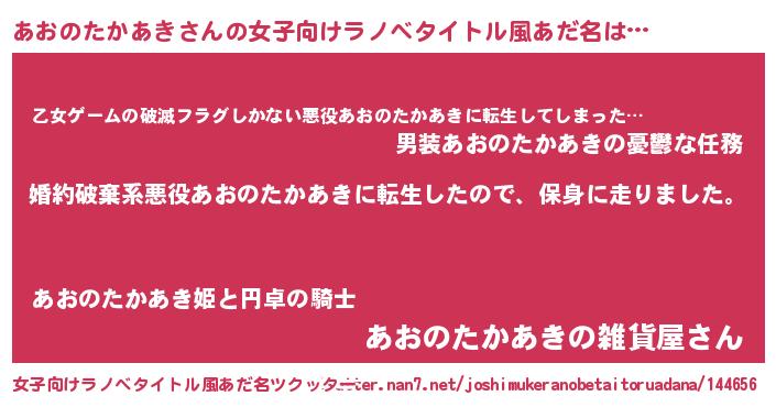 | 男性向けラノベタイトル風あだ名 | 『アオノタカアキスレイヤー』 |