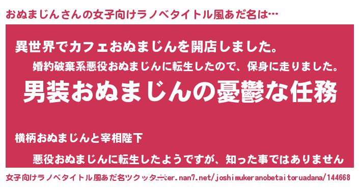 | 意味不明あだ名 | 『永久保存おぬまじん』 |