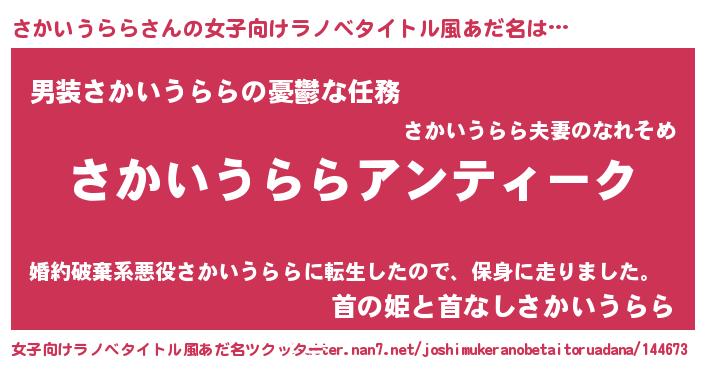 | 意味不明あだ名 | 『自称さかいうらら』 |