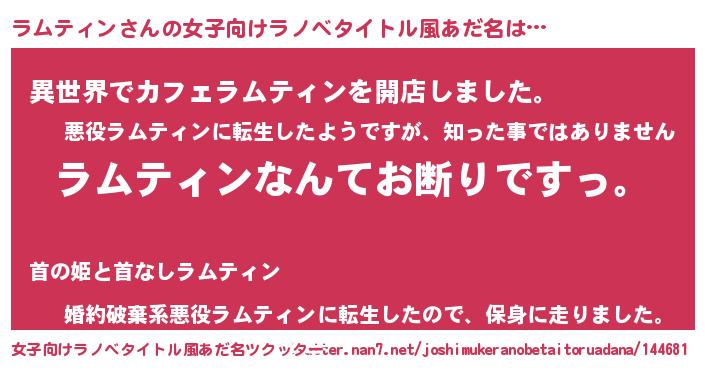 | 男性向けラノベタイトル風あだ名 | 『魔法科高校のラムティン』 |