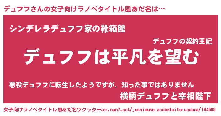 | 胡散臭い通販商品みたいなあだ名 | 『信頼と実績のネックレス…その名も「デュフフ」』 |