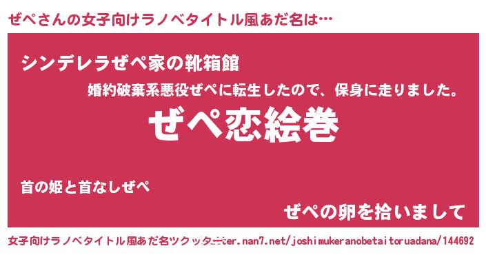 | 男性向けラノベタイトル風あだ名 | 『ノーゲーム・ノーゼペ』『緋弾のゼペ』 |