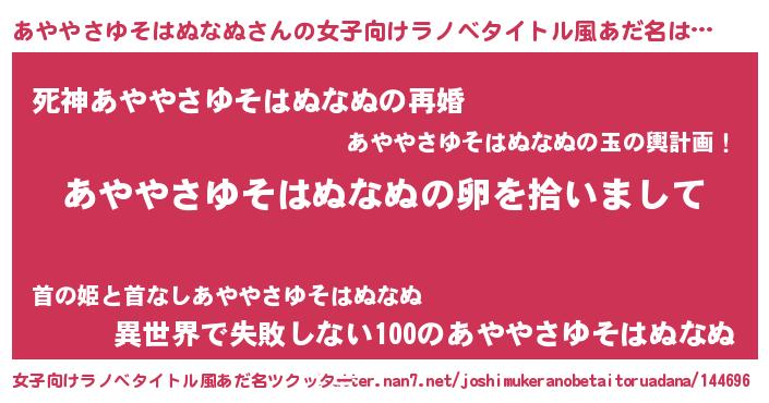 | 男性向けラノベタイトル風あだ名 | 『あややさゆそはぬなぬの嫁は女の子じゃないと思った?』 |