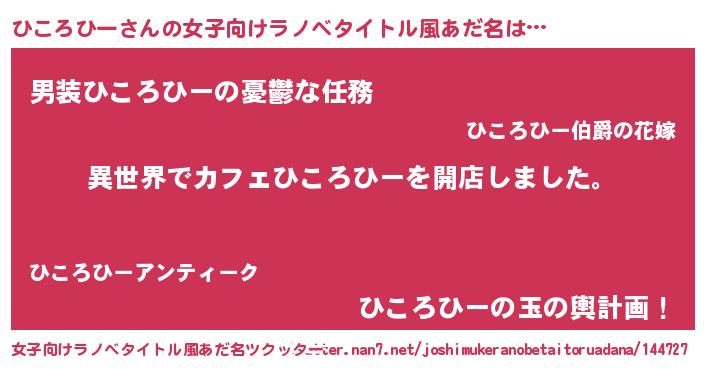 | 男性向けラノベタイトル風あだ名 | 『誰もが恐れるあのひころひーが、ぼくの専属メイドになるようです。』 |