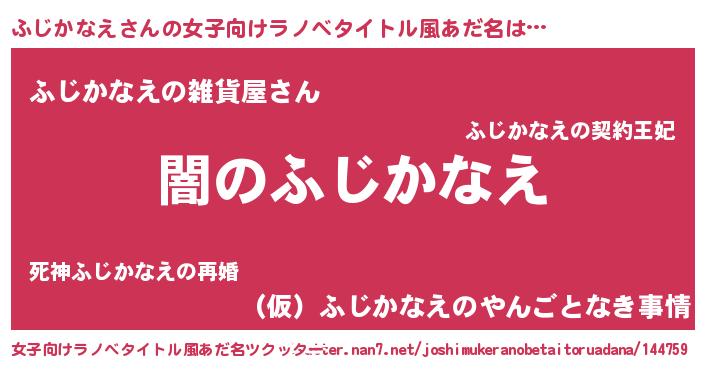 | 男性向けラノベタイトル風あだ名 | 『Re:ふじかなえから始める異世界生活』 |