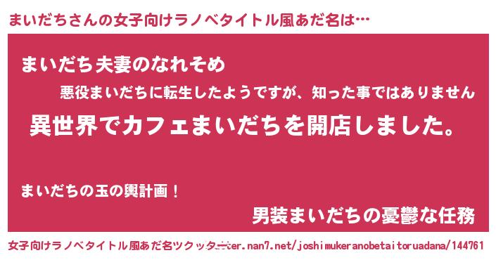 | ヘコむあだ名 | 『まいだち(苦笑)』『まいぷりん』 |