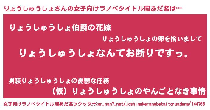| 意味不明あだ名 | 『自称りょうしゅうしょ』 |