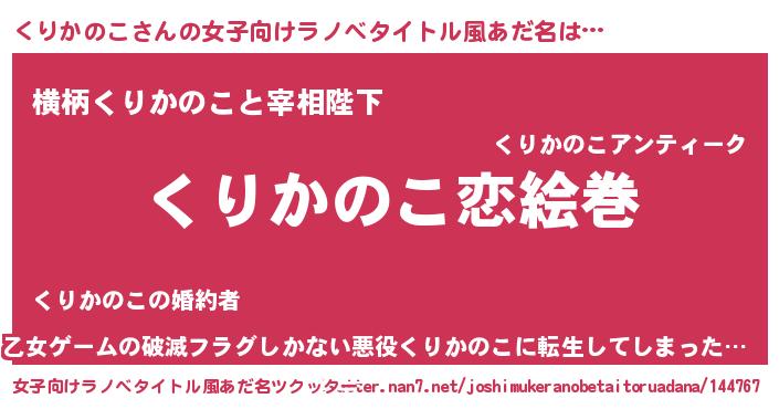| 男性向けラノベタイトル風あだ名 | 『ノーゲーム・ノークリカノコ』 |
