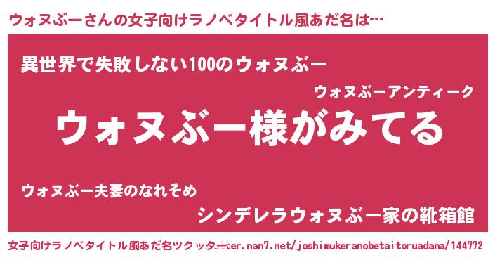 | 男性向けラノベタイトル風あだ名 | 『ウォヌぶーの嫁は女の子じゃないと思った?』 |