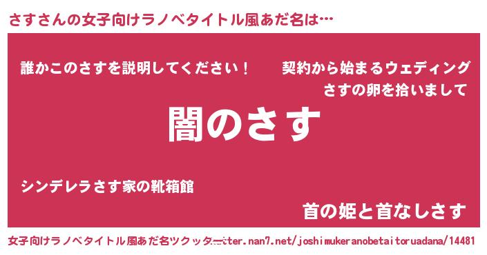 | 男性向けラノベタイトル風あだ名 | 『Re:さすから始める異世界生活』 |