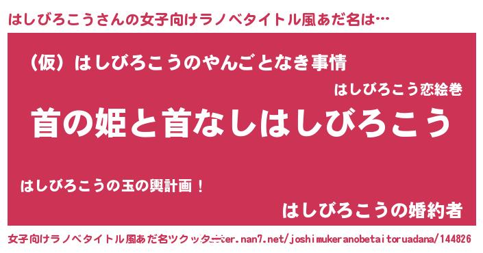| 男性向けラノベタイトル風あだ名 | 『はたらくはしびろこうさま!』 |