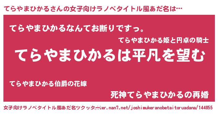 | 男性向けラノベタイトル風あだ名 | 『ダンジョンにてらやまひかるを求めるのは間違っているだろうか』 |