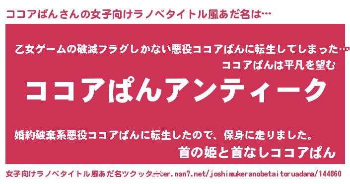| 意味不明あだ名 | 『自称ココアぱん』 |