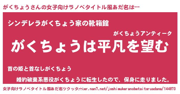 | 男性向けラノベタイトル風あだ名 | 『ダンジョンにがくちょうを求めるのは間違っているだろうか』 |