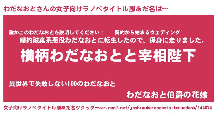 | ファンタジー風あだ名 | 『ワダフェル』『エターナルワダナオトー』 |