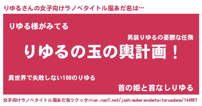 | ファンタジー風あだ名 | 『ユリリユヴァット』『ファントムリユス』 |