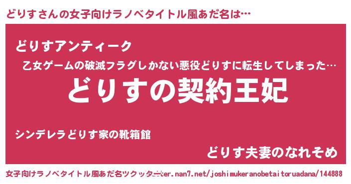 | 男性向けラノベタイトル風あだ名 | 『どりすという概念が存在しない退屈な世界 』 |