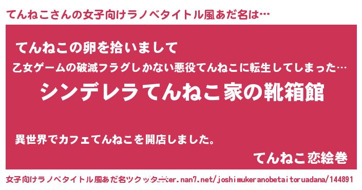 | 男性向けラノベタイトル風あだ名 | 『冴えないてんねこの育てかた』 |