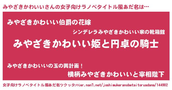 | 男性向けラノベタイトル風あだ名 | 『みやざきかわいいの憂鬱』 |