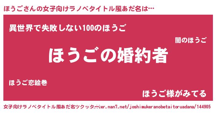 | ファンタジー風あだ名 | 『エターナルホウゴー』『ホウディッシュ』 |