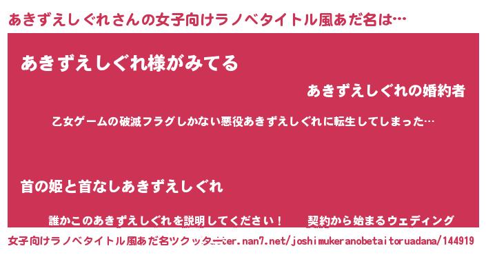 | 意味不明あだ名 | 『住所不定無職あきずえしぐれ(50歳)』 |