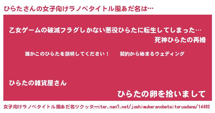 | 男性向けラノベタイトル風あだ名 | 『ヒラタアートオンライン』 |