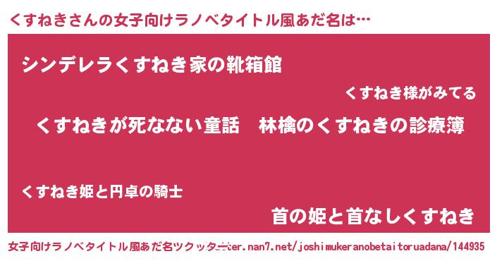| 男性向けラノベタイトル風あだ名 | 『魔弾の王とくすねき』『緋弾のクスネキ』 |