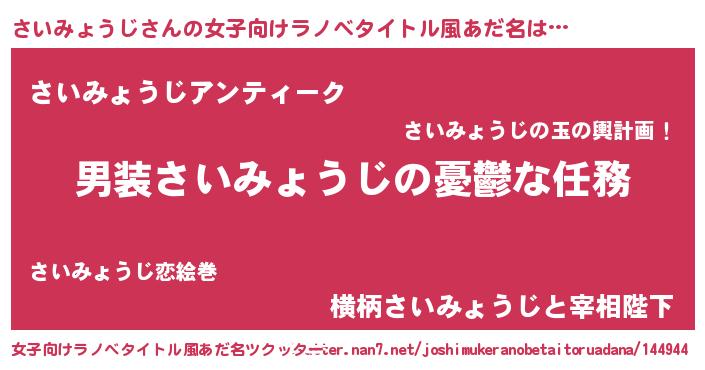 | 男性向けラノベタイトル風あだ名 | 『うちのさいみょうじが世界を掌握している!』 |