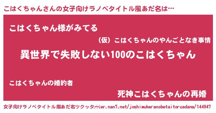 | ヒーロー風カッコイイあだ名 | 『ネオコハクチャン』『天弓騎士コハ』 |