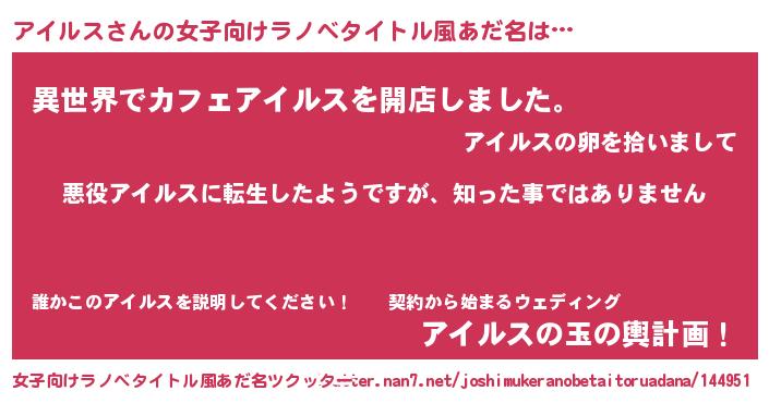 | 男性向けラノベタイトル風あだ名 | 『この素晴らしい世界にアイルスを!』 |